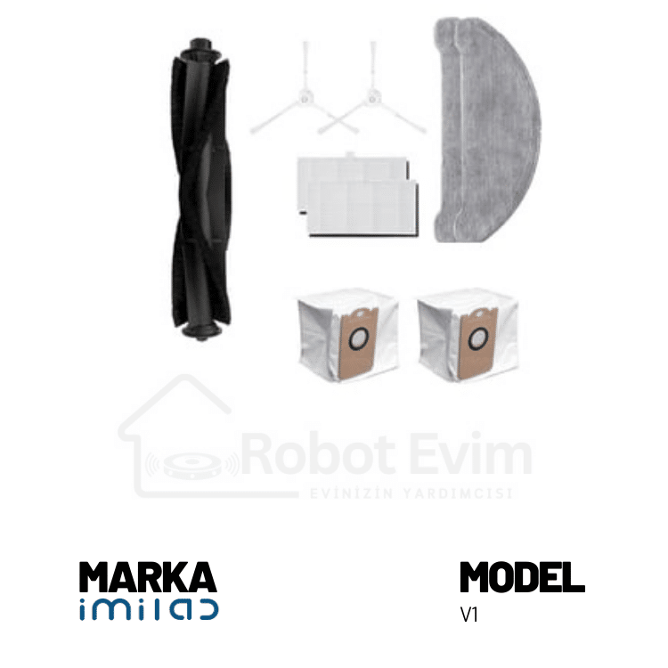 Imilab marka V1 modeli robot süpürgeniz için Orjinal ikili torbasız aksesuar seti. Paket içeriği; 1 ana fırça, 2 adet yan fırça, 2 adet hepa filtre, 2 adet mop bezi