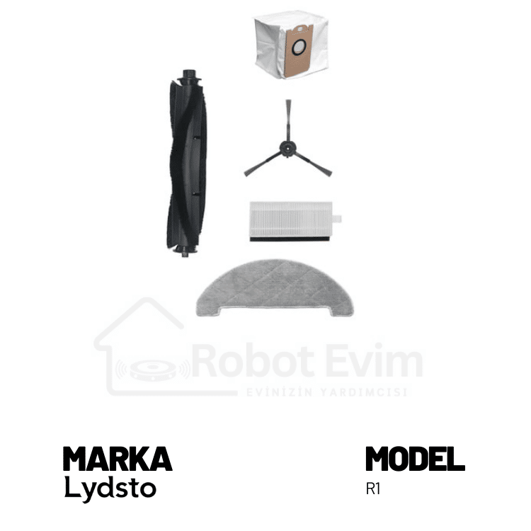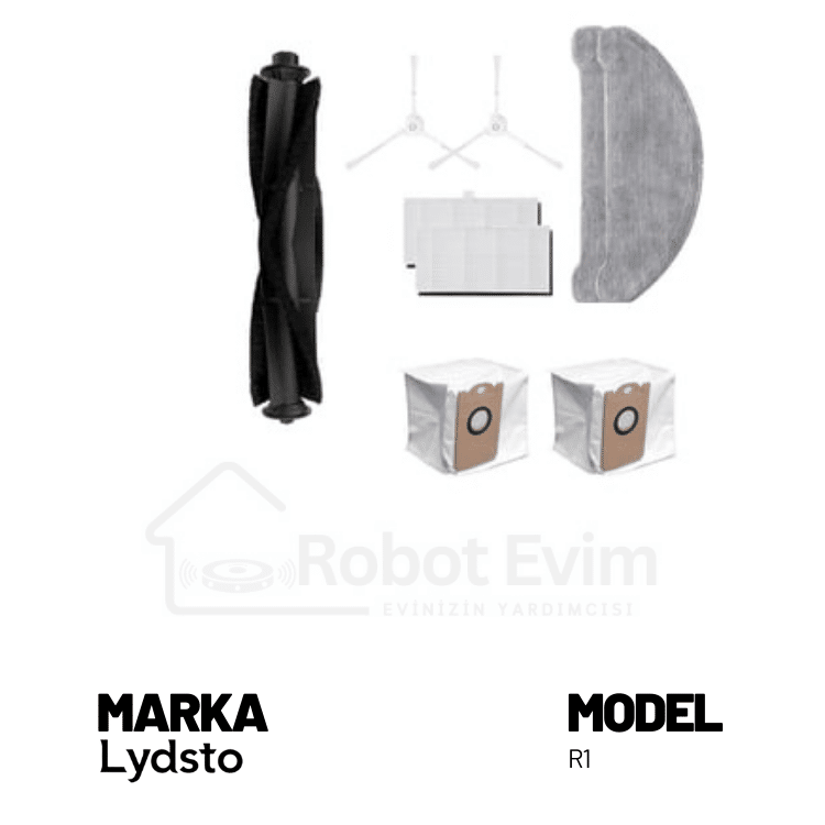 Lydstro marka R1 modeli robot süpürgeniz için Orjinal aksesuar seti. Paket içeriği; 1 adet ana fırça, 1 adet yan fırça, 1 adet hepa filtre, 1adet mop bezi