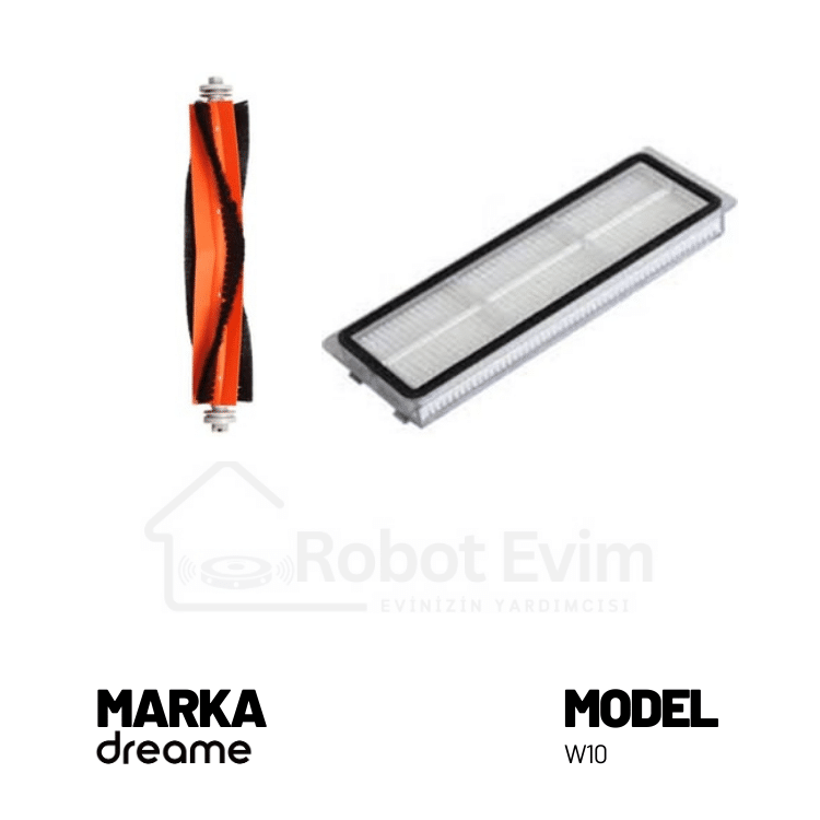 Dreame marka W10 modeli robot süpürgeniz için Orjinal aksesuar seti. Paket içeriği; 1 adet ana fırça, 1 adet hepa filtre