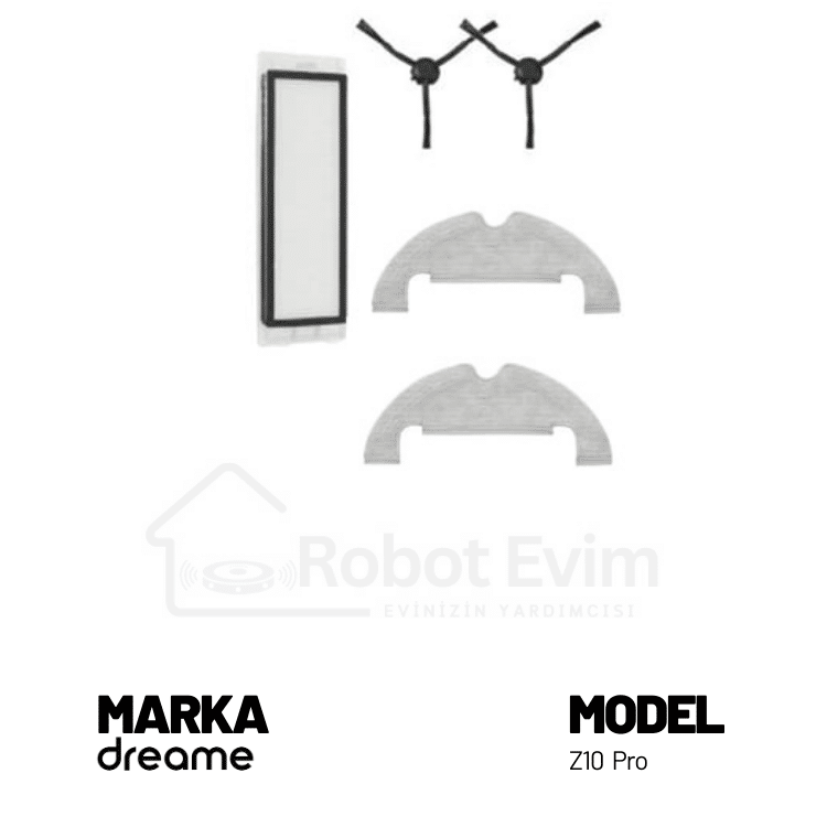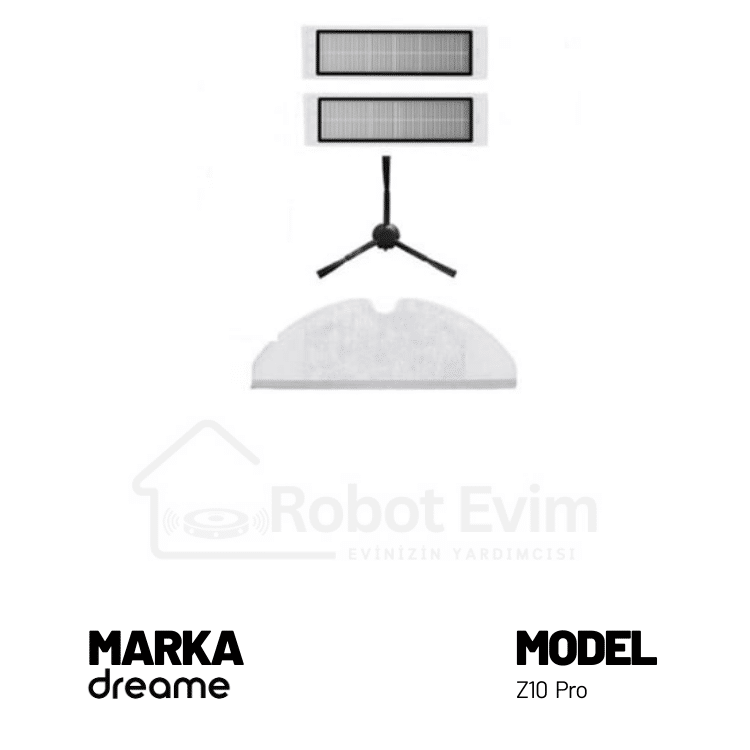 Dreame marka Z10 Pro modeli robot süpürgeniz için Orjinal aksesuar seti. Paket içeriği; 1 adet ana fırça, 2 adet yan fırça, 2 adet hepa filtre