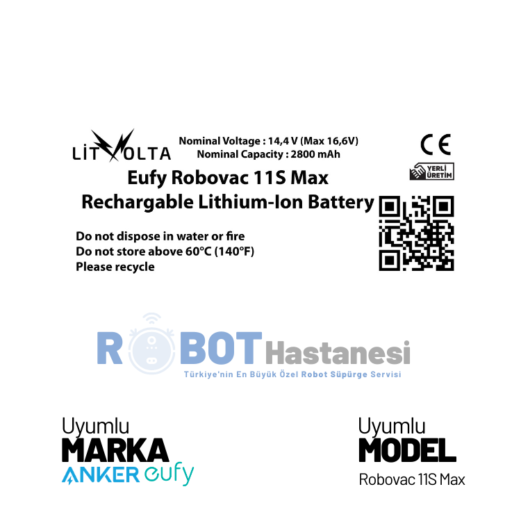 Anker marka Eufy Robovac 11S Max modeli robot süpürgeniz için yedek batarya / pil yedek parçası. Ürün Eufy Robovac 11S Max modeli için %100 uyumlu , tüm testlerden geçmiş ve garantili olarak aynı gün kargo avantajı ile satıştadır.