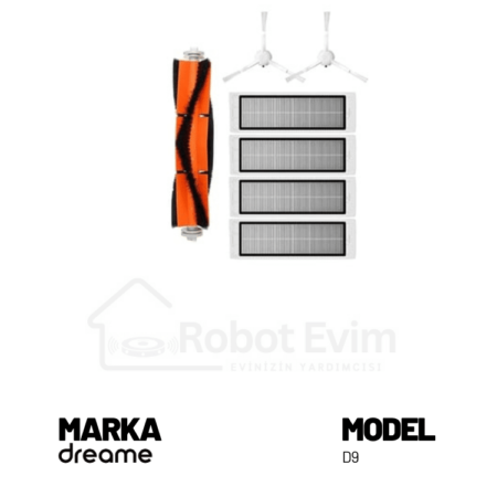 Dreame marka D9 modeli robot süpürgeniz için Orjinal dört filtreli aksesuar seti. Paket içeriği; 1 adet ana fırça, 2 adet yan fırça, 4 adet Hepa filtre