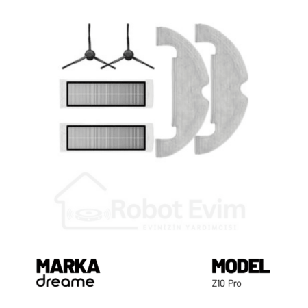 Dreame marka Z10 Pro modeli robot süpürgeniz için Orjinal fırçasız ikili aksesuar seti. Paket içeriği; 2 Yan Fırça, 2 Adet Hepa Filtre, 2 Mop Bez içermektedir.