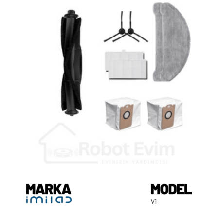 Imilab marka V1 modeli robot süpürgeniz için Orjinal siyah ikili aksesuar seti. Paket içeriği; 1 adet ana fırça, 2 adet yan fırça, 2 adet hepa filtre, 2 adet mop bezi, 2 adet toz torbası