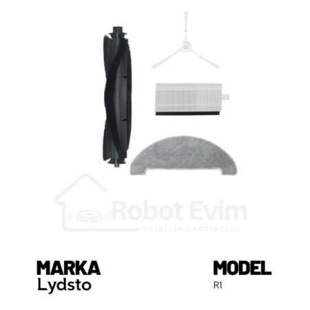 Lydstro marka R1 modeli robot süpürgeniz için Orjinal beyaz aksesuar seti. Paket içeriği; 1 adet ana fırça, 1 adet yan fırça, 1 adet hepa filtre, 1 adet mop bezi içermektedir.