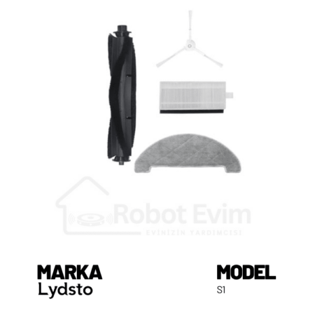 Lydstro marka S1 modeli robot süpürgeniz için Orjinal beyaz aksesuar seti. Paket içeriği; 1 adet ana fırça, 1 adet yan fırça, 1 adet hepa filtre, 1 adet mop bezi içermektedir.