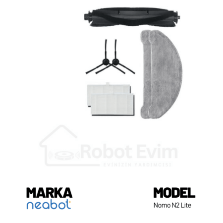 Neabot marka Nomo N2 Lite modeli robot süpürgeniz için Orjinal siyah ikili aksesuar seti. Paket içeriği; 1 adet ana fırça, 2 adet yan fırça, 2 adet hepa filtre, 2 adet mop bezi içermektedir.