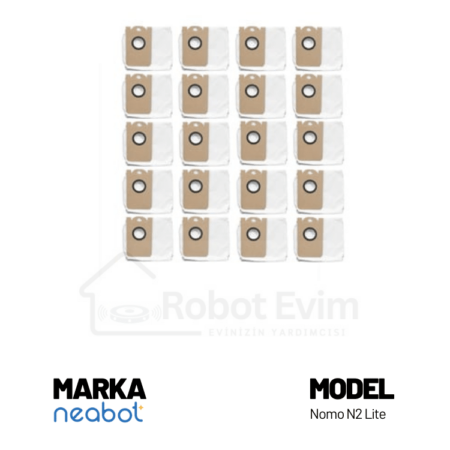Neabot marka Nomo N2 Lite modeli robot süpürgeniz için Orjinal yirmili torba seti. Paket içeriği; 20 toz torbası