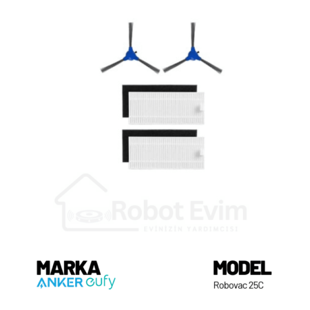 Roidmi marka Eve modeli robot süpürgeniz için Orjinal aksesuar seti. Paket içeriği; 1 adet ana fırça, 2 adet yan fırça, 2 adet hepa filtre