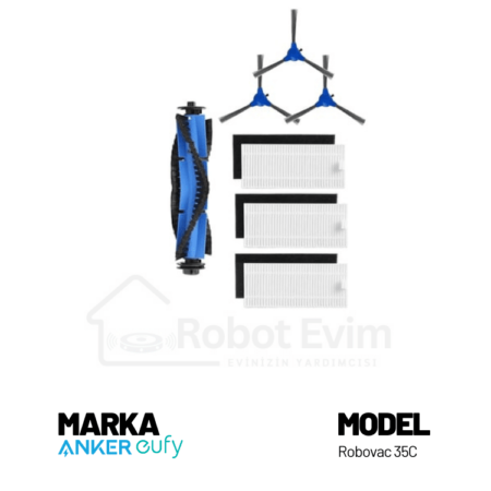 Roidmi marka Eve modeli robot süpürgeniz için Orjinal aksesuar seti. Paket içeriği; 1 adet ana fırça, 2 adet yan fırça, 2 adet hepa filtre